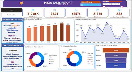 Revenue: $817.86K | Orders: 21,350 | Pizzas Sold: 49,574