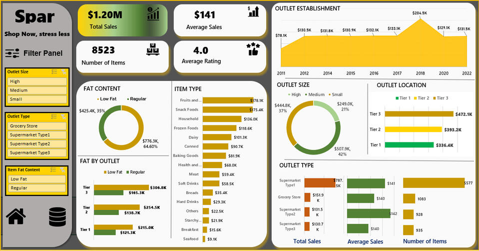 EXCEL INTERACTIVE DASHBOARD SPAR SUPERMARKET SALES ANALYSIS