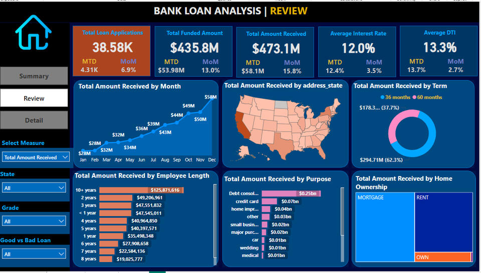 SQL | POWER BI BANK LOAN ANALYSIS DASHBOARD (REVIEW PAGE)